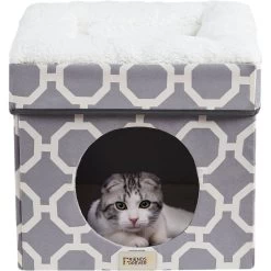 Friends Forever Taylor Collapsible Cube Cat House & Ottoman, Grey