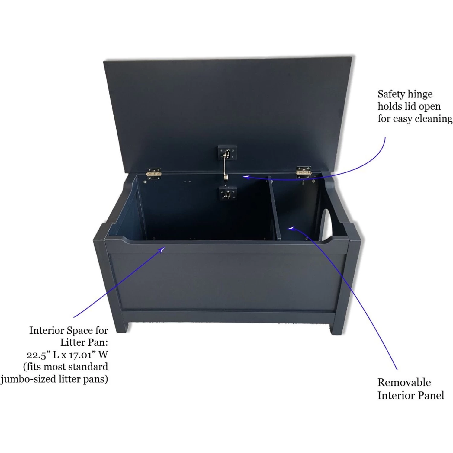 - Features an interior panel that helps prevent litter from being kicked out onto the floor.