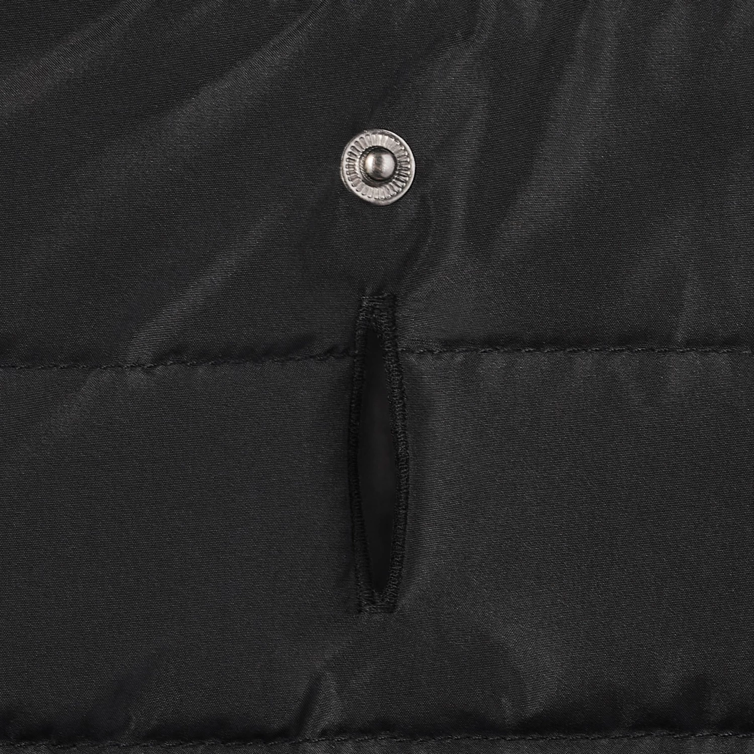 - Hook-and-loop fasteners up the belly and a snap button at the neck offer a snug, effective fit.