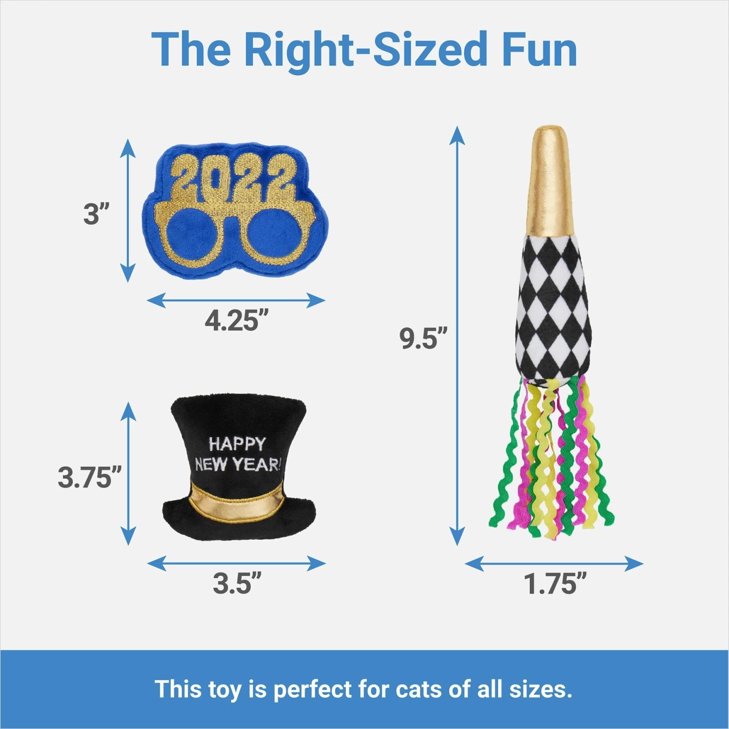 - New Yearโs plush cat toy set is the perfect gift to bring some holiday cheer to your kitty.