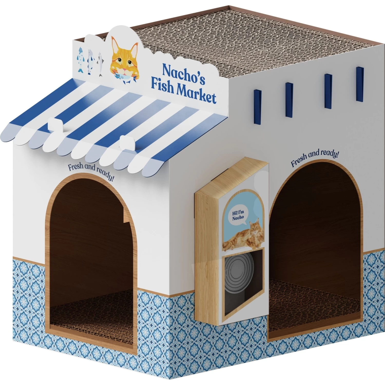 - Includes 2 scratchboards for lounging, perching and catnapping!
