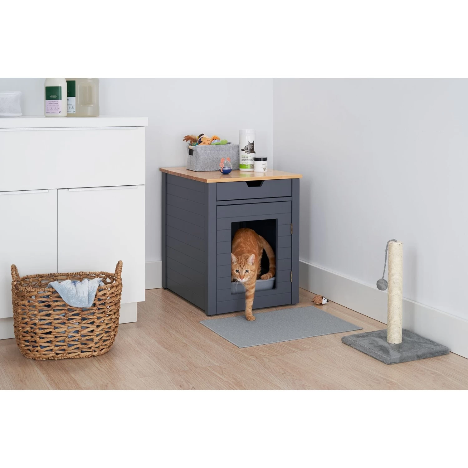TRINITY 20-in Enclosure End Table With Drawer Cat Litter Box, Dark Grey, Small
