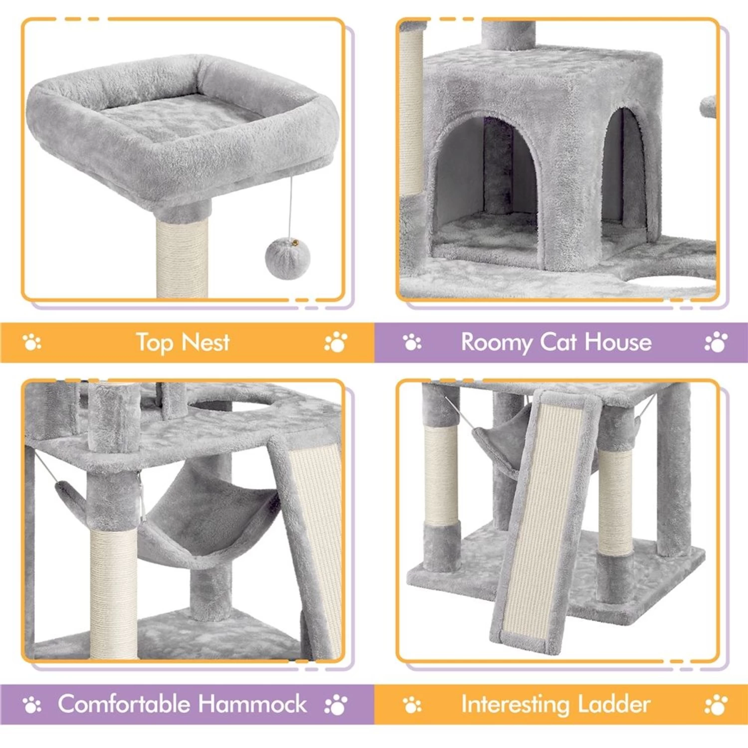 - Includes durable scratching posts and pads made of natural sisal to encourage positive scratching behavior.