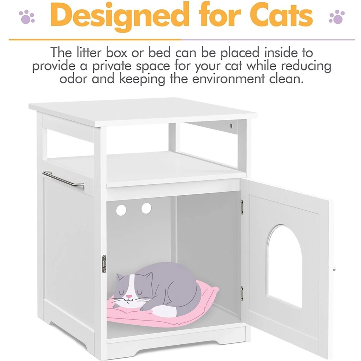 - Ideal for storing a small litterbox, pet bed, or other pet gear in a space-efficient way.